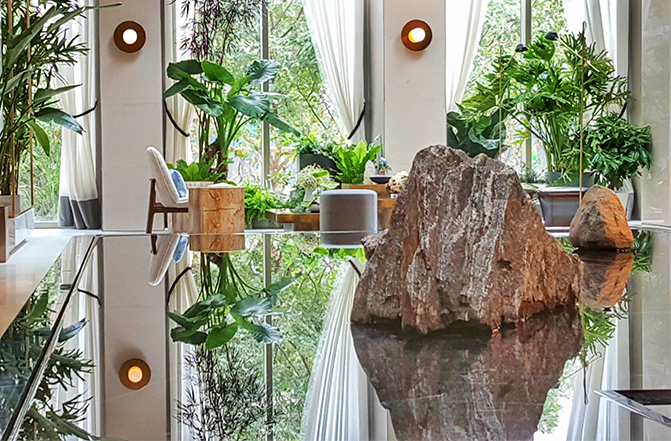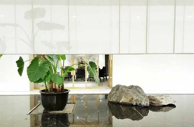 蕨類特有的舒朗和美感在室內(nèi)柔和的燈光和東方意境的水池烘托下,彰顯了東方靜謐、優(yōu)雅的氣質(zhì)。