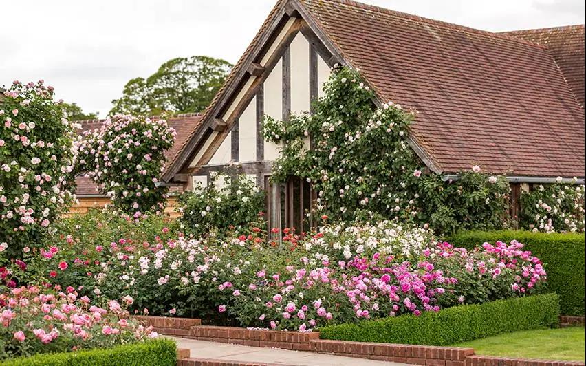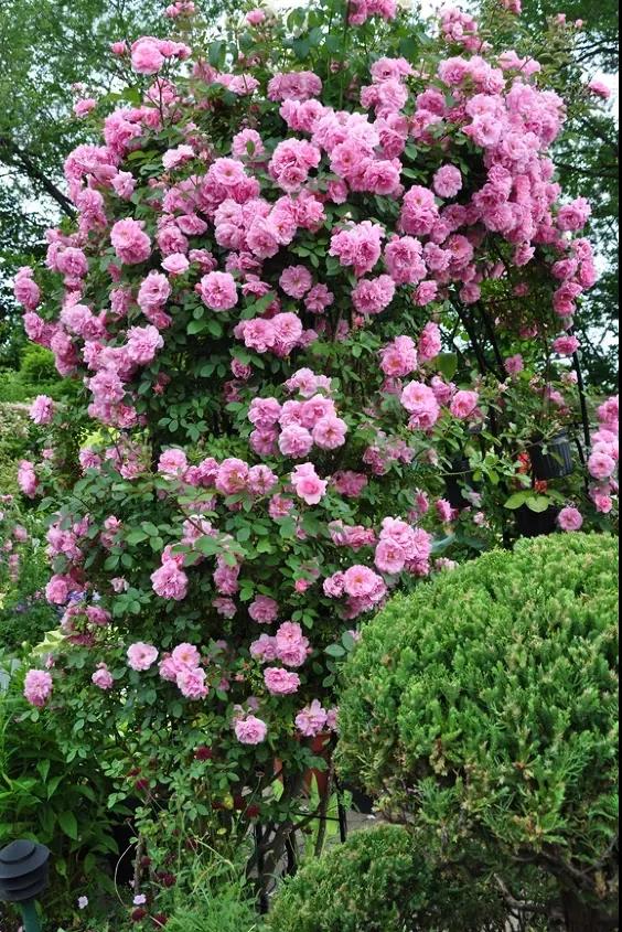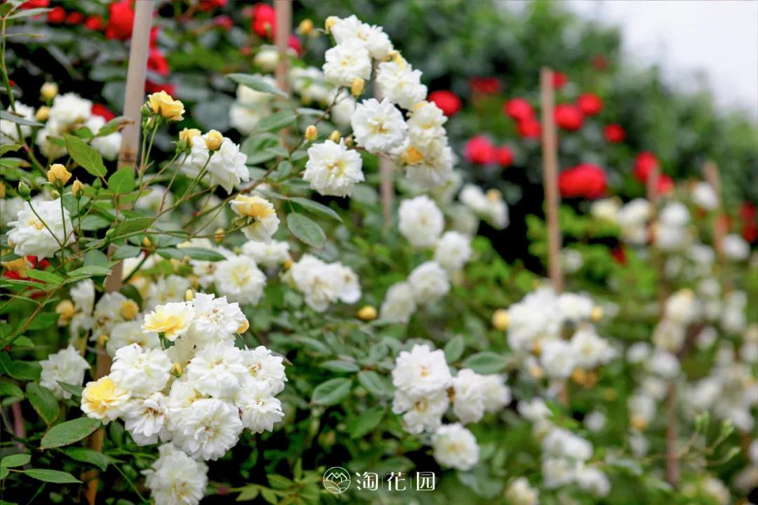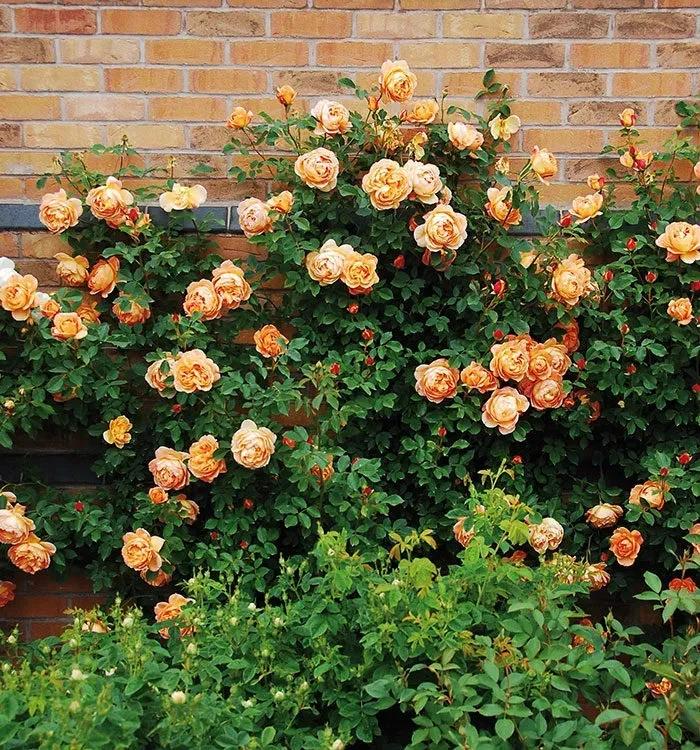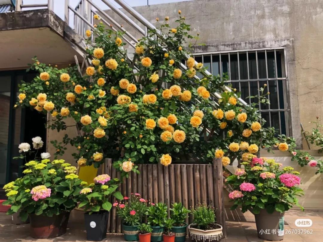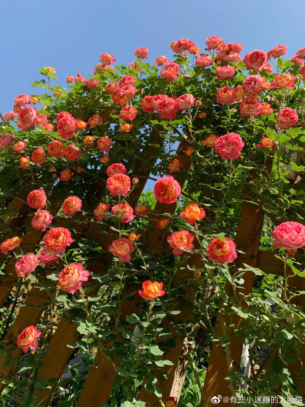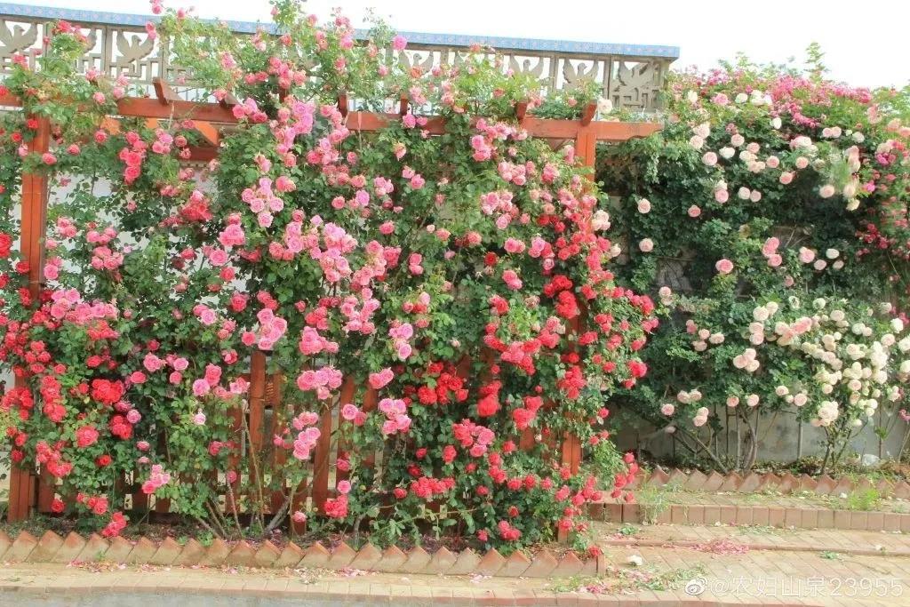 如果你想打造一面花墻,選擇攀緣于柵欄上的月季時,則優先推薦花量大、耐牽引、容易出筍枝的藤本類品種。