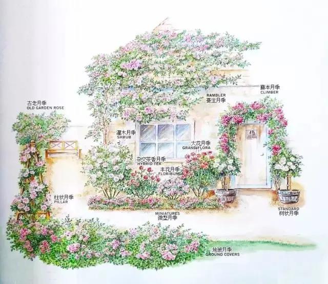 如果空間比較富裕,也可以利用花架和花柱栽種一些藤本類品種。