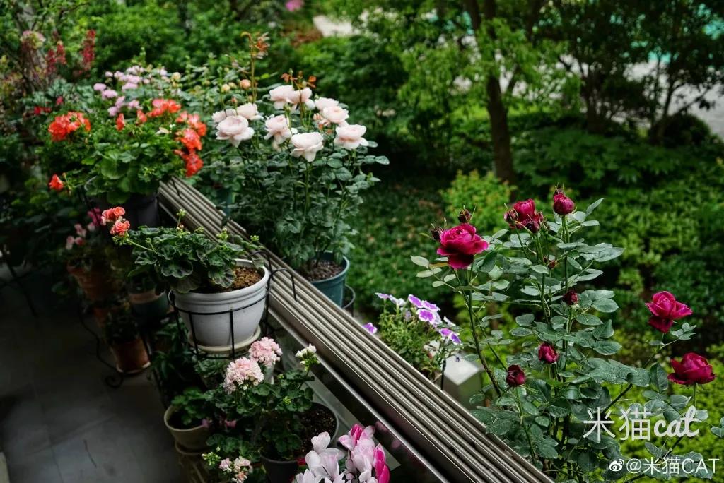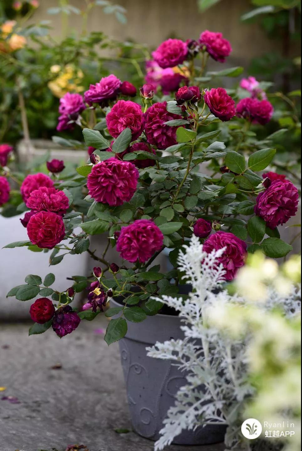 露臺花園大多空間有限,不容易伸展,且以盆栽居多,所以優先推薦選擇株型較為緊湊、花量大且多季開花的灌木類品種和地被類品種。
