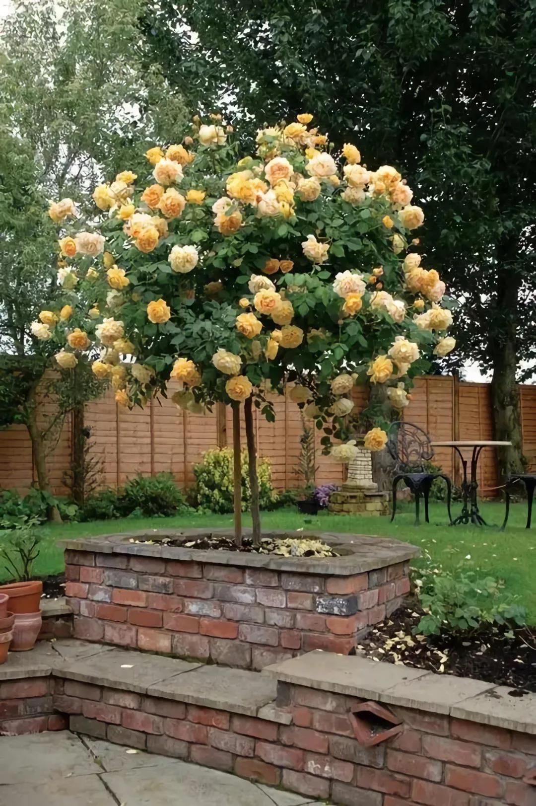 比如地被月季非常適宜種在花壇前列,中小型的灌木類月季緊隨其后營造層次感,一些大型的灌木或直立性強的藤本類月季就可以用來殿后充當背景,樹狀月季孤植其中可以打造視覺焦點。